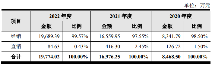 此外,在銷售模式上,該公司還是以經(jīng)銷為主,在2022年,其直銷占比僅為0.43%,大量的營收由經(jīng)銷貢獻。據(jù)了解,其2022年主要客戶有上海熠磊、ProGate、華辰信科、神州數(shù)碼、深圳和順泰等,銷售模式均為經(jīng)銷。