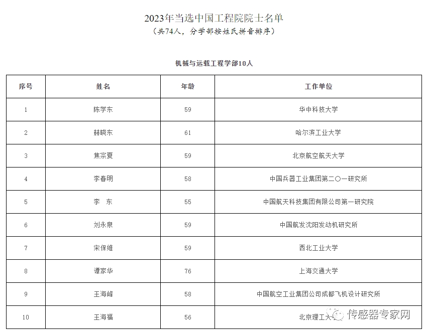 多位傳感器專家當選2023中國科學院/中國工程院院