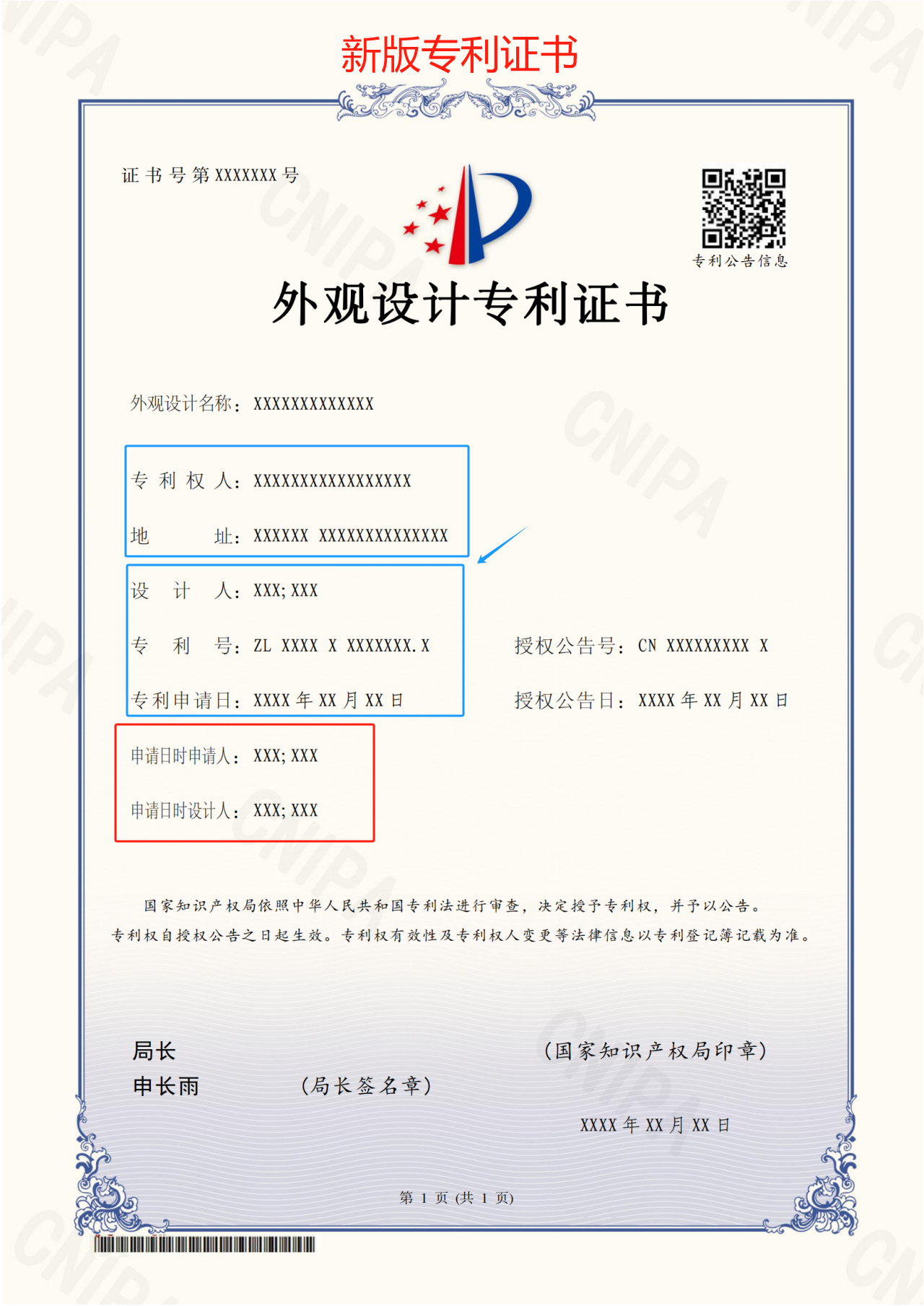此外,實用新型專利證書和外觀設(shè)計專利證書也有相同變化。
