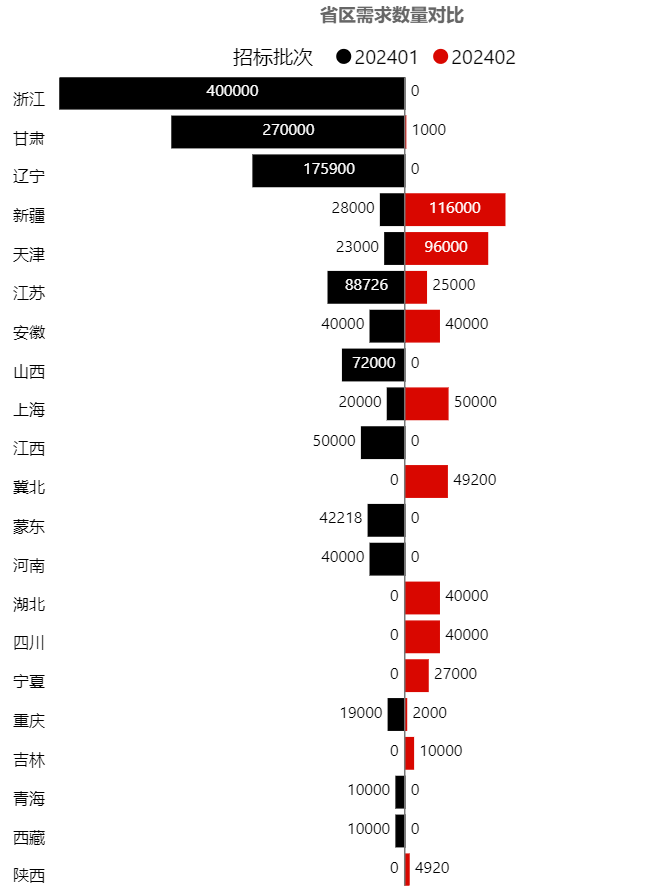 主要的需求量來自四川、湖北、安徽、福建等省份。