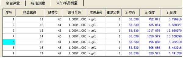 備注: (1)序號1和2為“水樣一”,序號3為“水樣一”的加標(biāo),加標(biāo)濃度為7ng/mL; (2)序號5、6和7為“水樣二”,序號4為“水樣二”的加標(biāo),加標(biāo)濃度為7ng/mL; (3)經(jīng)計算“水樣一”中含量為56.89 ng/mL,加標(biāo)回收率為99.84%; (4)經(jīng)計算“水樣二”中含量為65.03 ng/mL,加標(biāo)回收率為95.24%。 |