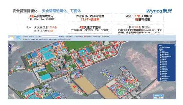 項目圍繞新安化工集團馬目智能園區的多個公司的隱患管理、作業審批、承包商管理、預警信息管理、事故管理等業務流程規范進行梳理、固化,保障園區各企業以統一的安全生產標準規范進行生產運營活動,以安全可視化一張圖管控、雙控體系平臺化管理、現場作業人機結合閉環、一站式應急協同指揮等應用促使安全生產標準化快速落地。