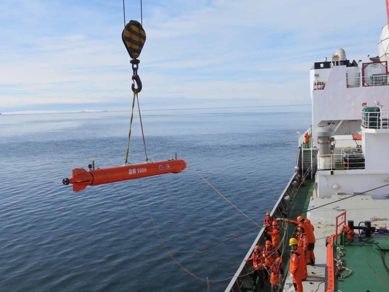 年初,“雪龍”號極地考察船抵達(dá)南大洋羅斯海新站附近海域,考察隊(duì)按航次計(jì)劃布放了“探索1000”。“探索1000”按照計(jì)劃完成自主執(zhí)行多海洋要素走航觀測后被成功回收至“雪龍?zhí)枴睒O地考察船。本次作業(yè)中,“探索1000”水下連續(xù)工作35小時(shí),航程約68公里,完成了17個(gè)剖面的科學(xué)觀測,獲得了海流、溫度、鹽度、濁度、溶解氧及葉綠素等大量水文探測數(shù)據(jù),也充分驗(yàn)證了我國自主水下機(jī)器人在極端海洋環(huán)境下開展科學(xué)探測的實(shí)用性和可靠性,為極地冰蓋冰架下科學(xué)研究取得突破進(jìn)展提供重要手段。