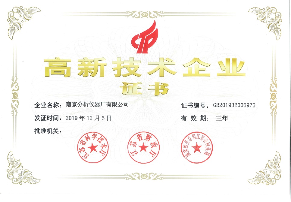 經(jīng)過江蘇省科學(xué)技術(shù)廳、江蘇省財政廳和國家稅務(wù)總局江蘇省稅務(wù)局的綜合評定,南京分析儀器廠有限公司再次獲得國家高新技術(shù)企業(yè)稱號。