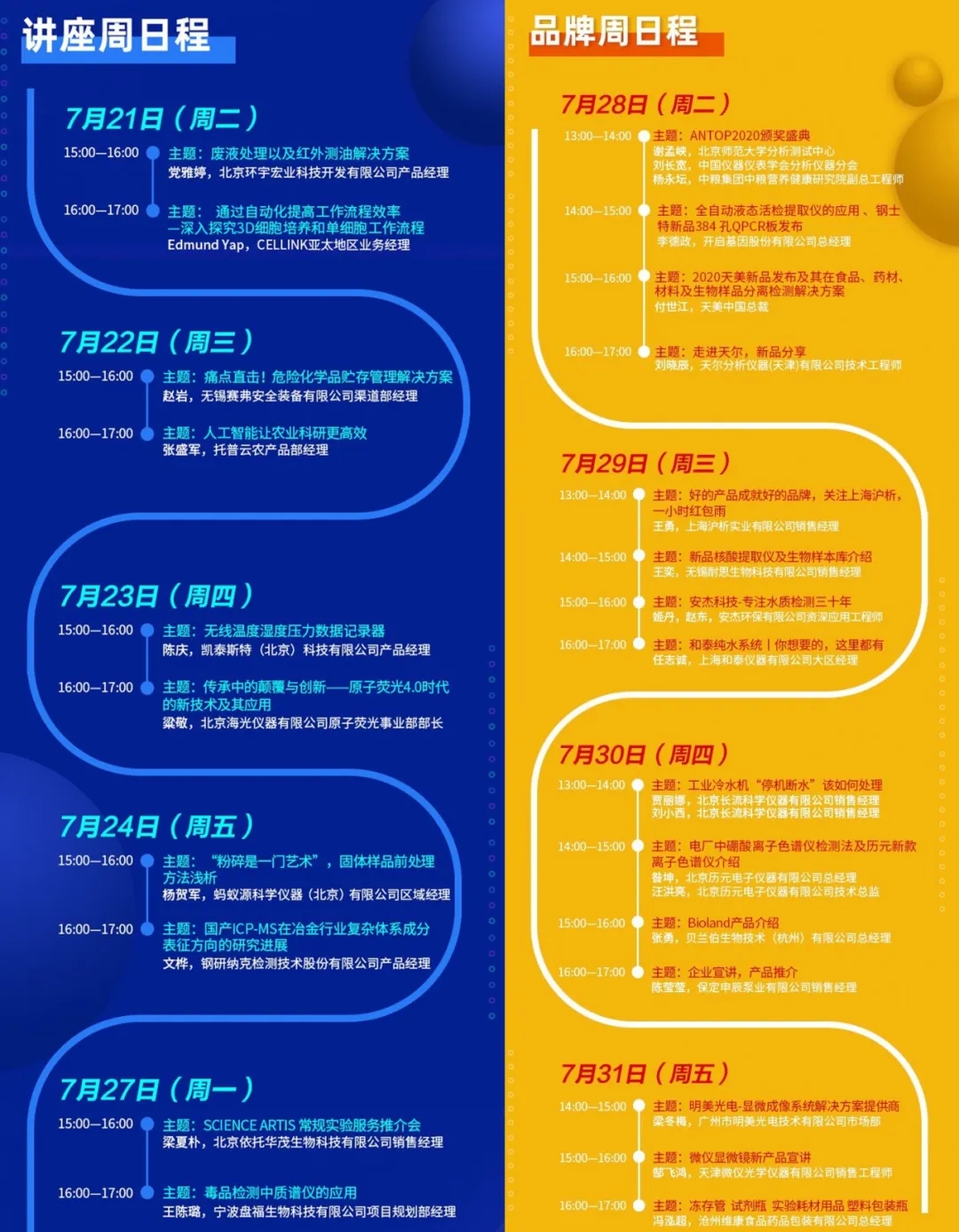“線上直播”部分,7月21日-31日將有26場(chǎng)次的線上直播,包含了“講座周”、“品牌周”兩大板塊。“講座周”以傳播普及先進(jìn)技術(shù)和經(jīng)驗(yàn)為主要內(nèi)容,“品牌周”以產(chǎn)品推介為主要內(nèi)容。歡迎科學(xué)儀器行業(yè)從業(yè)者于7月20-31日期間,參觀“CISILE線上展覽”,觀看線上直播。