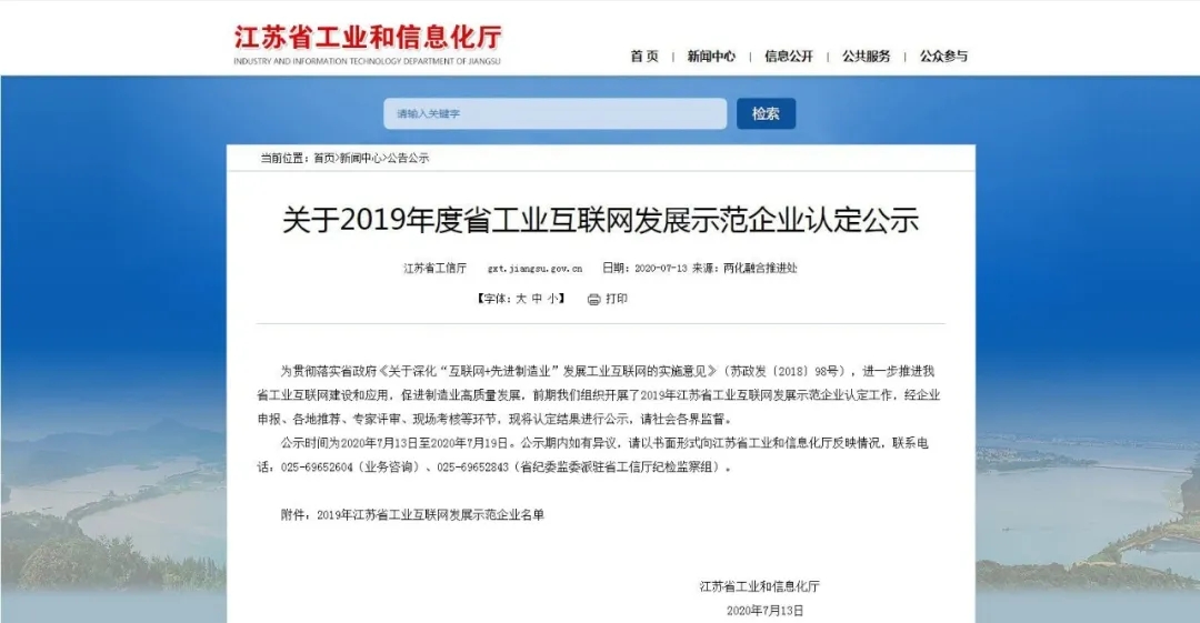 為貫徹落實省政府《關于深化“互聯網+先進制造業”發展工業互聯網的實施意見》(蘇政發〔2018〕98號),進一步推進我省工業互聯網建設和應用,促進制造業高質量發展,前期江蘇省工信廳組織開展了2019年江蘇省工業互聯網發展示范企業認定工作。