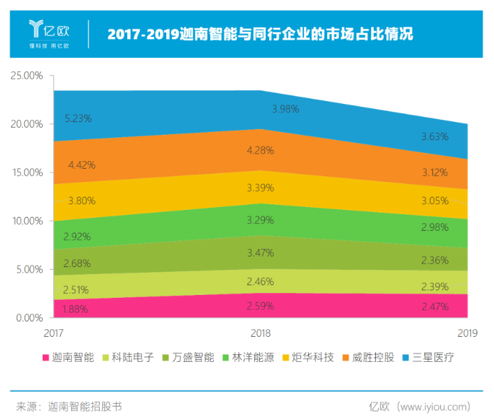 迦南智能不足3%的市場份額的確不高,但它與同行公司相比差距并不大。在上市企業中,炬華科技(300360)、威勝控股(03393.HK)、三星醫療(601567)的市場占有率連續三年超過了3%,但其市占率的成績并不喜人。2017年-2019年,這三家企業市占率連年走低。