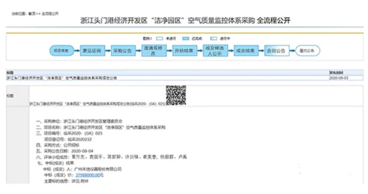 9月3日,廣州禾信儀器股份有限公司(以下簡稱"禾信儀器")以3798·8萬元中標(biāo)浙江頭門港經(jīng)濟(jì)開發(fā)區(qū)“潔凈園區(qū)"空氣質(zhì)量監(jiān)控體系頂目,此次中標(biāo)的是以分布式多通道快速質(zhì)譜儀為核心,并通過多種質(zhì)譜技術(shù)手段構(gòu)建臨海醫(yī)化園區(qū)在線監(jiān)測預(yù)警溯源體系,實現(xiàn)園區(qū)有有害氣體的快速預(yù)警、惡臭異味氣體的精準(zhǔn)溯源,提高園區(qū)精細(xì)化管理水平。
