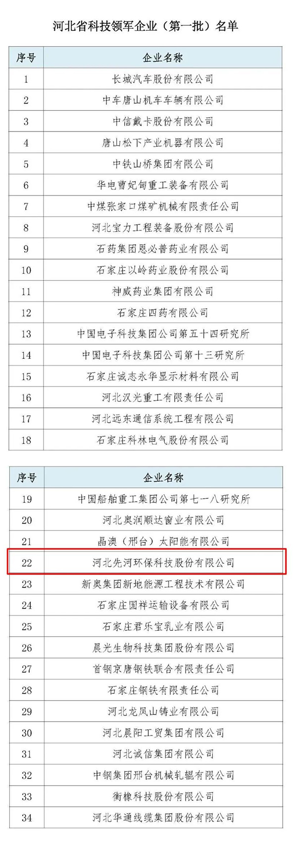 近日,河北省科學技術廳發布《關于認定第一批河北省科技領軍企業的通知》。為促進全省科技領軍企業加快發展,按照《河北省科技領軍企業認定管理辦法(試行)》有關規定,經企業申報、歸口單位審核、專家評審和網上公示,認定河北先河環保科技股份有限公司(以下簡稱先河環保)等34家企業為第一批河北省科技領軍企業。