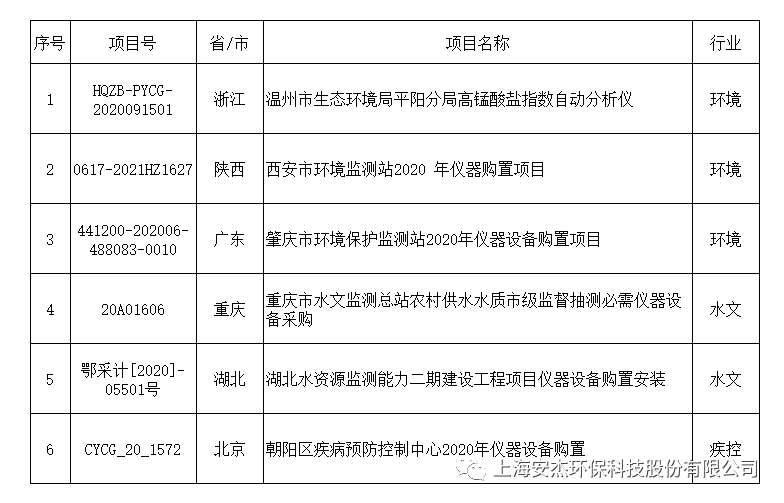 近期安杰科技APA-500全自動高錳酸鹽指數分析儀在環境、水文、疾控等行業的中標信息: