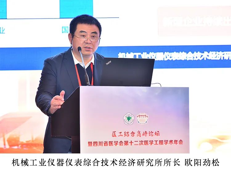 工業(yè)和信息化部科技司副司長王衛(wèi)明、國家藥品監(jiān)督管理局醫(yī)療器械注冊管理司調(diào)研員程錦、四川大學(xué)副校長張林、中華醫(yī)學(xué)會醫(yī)學(xué)工程分會主任委員李斌、四川大學(xué)華西醫(yī)院副院長黃進、四川省醫(yī)學(xué)工程專委會主任委員柏森等主管部門領(lǐng)導(dǎo)、醫(yī)工行業(yè)專家出席論壇,來自全國知名醫(yī)院、高校、科研院所、醫(yī)療裝備企業(yè)等單位代表300余人參加了會議。機械工業(yè)儀器儀表綜合技術(shù)經(jīng)濟研究所(以下簡稱儀綜所)所長歐陽勁松代表醫(yī)療裝備產(chǎn)業(yè)技術(shù)基礎(chǔ)公共服務(wù)平臺秘書處單位出席論壇。