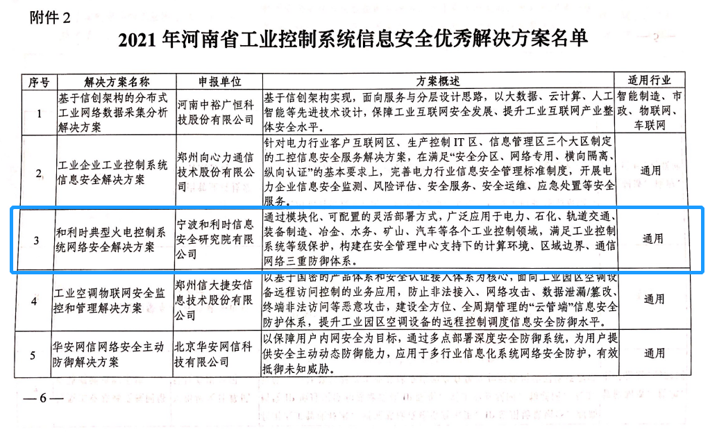 近日,河南省工業和信息化廳組織開展2021年全省工業控制系統信息安全新技術新產品和優秀解決方案征集工作,經地方工信部門初審推薦、省工業和信息化廳組織專家評審,網上公示等環節,和利時工業安全態勢感知系統、和利時典型火電控制系統網絡安全解決方案強勢入選2021年河南省工業控制系統信息安全新技術新產品和優秀解決方案名單。