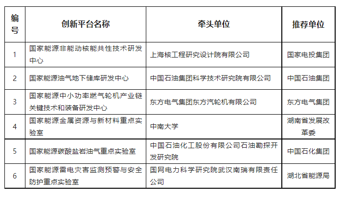 國家能源局公示首批創新平臺名單