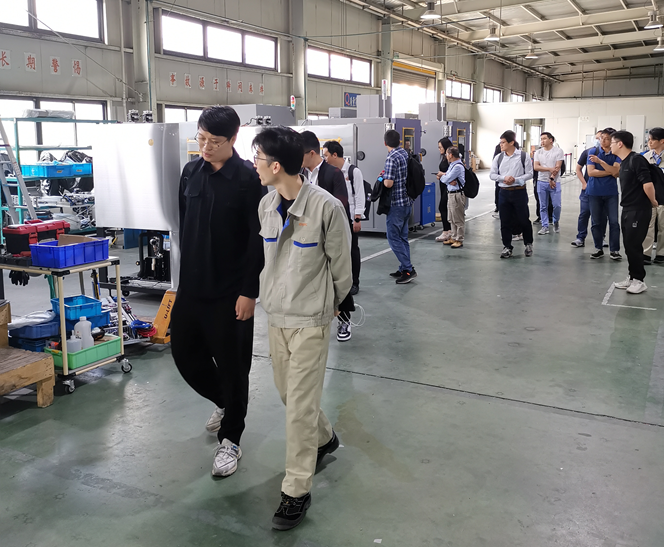 學(xué)員們先后參觀了生產(chǎn)車間、鈑金車間和組裝調(diào)試車間,向一線員工了解了生產(chǎn)工藝過程及生產(chǎn)管控細節(jié)。