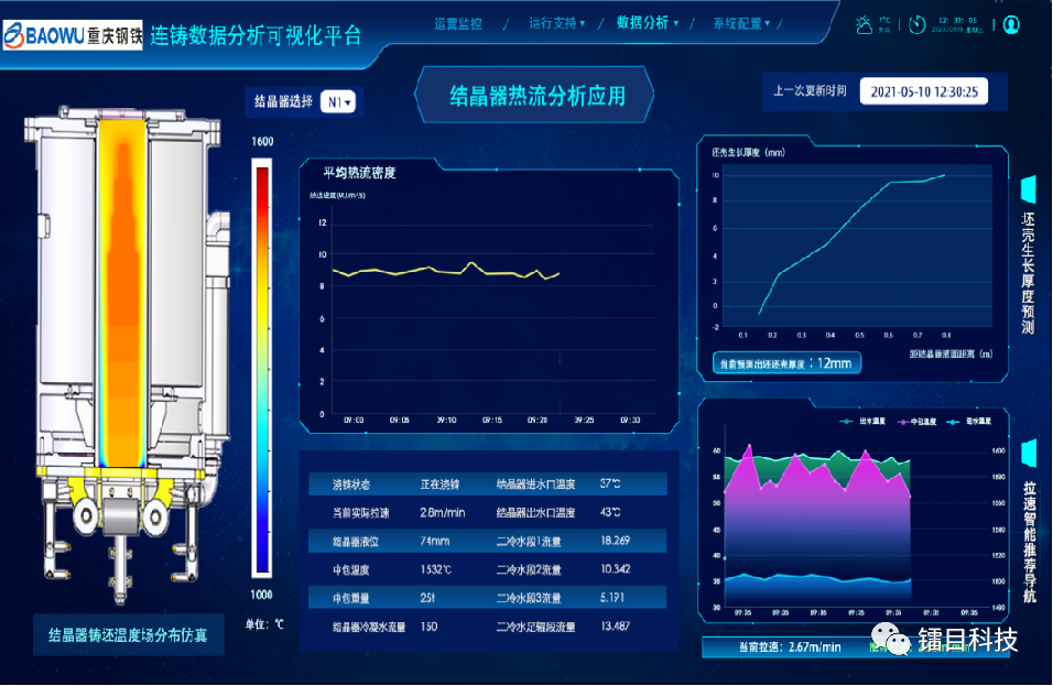 又如,寶武集團重慶鋼鐵煉鋼二區,采用了鐳目智能脫硫扒渣系統(規劃)+煉鋼生產智能管控系統+智能連鑄機+鐵水轉運和連鑄集控中心產品組合之后,其連鑄拉速可以穩定在3.5m/min以上,連澆爐數超過50爐,產能提升達40%