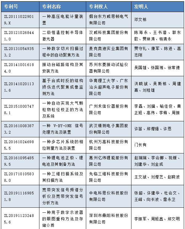 根據(jù)《中國(guó)專利獎(jiǎng)評(píng)獎(jiǎng)辦法》規(guī)定,經(jīng)國(guó)務(wù)院有關(guān)部門知識(shí)產(chǎn)權(quán)工作管理機(jī)構(gòu)、地方知識(shí)產(chǎn)權(quán)局、有關(guān)全國(guó)性行業(yè)協(xié)會(huì),以及中國(guó)科學(xué)院院士和中國(guó)工程院院士等推薦,中國(guó)專利獎(jiǎng)評(píng)審委員會(huì)評(píng)審,社會(huì)公示,國(guó)家知識(shí)產(chǎn)權(quán)局和世界知識(shí)產(chǎn)權(quán)組織決定授予“HIV感染的肽衍生物融合抑制劑”等29項(xiàng)發(fā)明、實(shí)用新型專利中國(guó)專利金獎(jiǎng),“火星車”等10項(xiàng)外觀設(shè)計(jì)專利中國(guó)外觀設(shè)計(jì)金獎(jiǎng);國(guó)家知識(shí)產(chǎn)權(quán)局決定授予“填埋氣體和滲濾液傳輸過程的監(jiān)測(cè)試驗(yàn)系統(tǒng)”等60項(xiàng)發(fā)明、實(shí)用新型專利中國(guó)專利銀獎(jiǎng),“餐飲機(jī)器人(普渡)”等15項(xiàng)外觀設(shè)計(jì)專利中國(guó)外觀設(shè)計(jì)銀獎(jiǎng);國(guó)家知識(shí)產(chǎn)權(quán)局決定授予“藥品的自動(dòng)分裝與計(jì)量裝置”等777項(xiàng)發(fā)明、實(shí)用新型專利中國(guó)專利優(yōu)秀獎(jiǎng),“便攜式彩色超聲診斷儀”等45項(xiàng)外觀設(shè)計(jì)專利中國(guó)外觀設(shè)計(jì)優(yōu)秀獎(jiǎng);國(guó)家知識(shí)產(chǎn)權(quán)局決定授予廣東省知識(shí)產(chǎn)權(quán)局等7家單位中國(guó)專利獎(jiǎng)最佳組織獎(jiǎng),中國(guó)電子儀器行業(yè)協(xié)會(huì)等20家單位中國(guó)專利獎(jiǎng)優(yōu)秀組織獎(jiǎng),高文等20位院士中國(guó)專利獎(jiǎng)最佳推薦獎(jiǎng)。