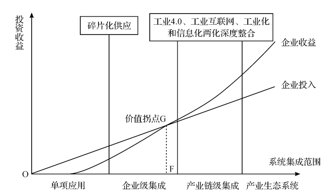 綜上所述,對于制造業數字化改造障礙的認識,國內外學者和企業實踐者基本達成一致:數字化轉型存在兩大基本矛盾,即集成陷阱和中小企業陷阱。“所謂‘集成陷阱’是指企業管理信息的全局優化需求與碎片化供給的矛盾。具體表現為企業在工業化和信息化融合發展的初期階段,各個職能部門各自搞了許多信息系統,卻鮮見信息系統間的連接與集成,最終成為一個個‘信息孤島’”。一般認為,數字化改造只有突破了集成陷阱(突破圖1價值拐點G),企業才會進入工業化和信息化兩化深度融合發展的高級階段,進而進入實質性受益階段。而“所謂‘中小企業陷阱’是指對于廣大中小企業來說,由于缺資金、缺人才,對數字化轉型大都抱有‘不敢轉、不愿轉、不能轉、不會轉、不善轉’的態度;即使有勇于嘗試者,也大都在沒有超越前期沉沒成本(圖1中OF段)、尚未突破“集成陷阱”、數字化改造效果尚未顯現前消耗完了所有的資源?!?/span>