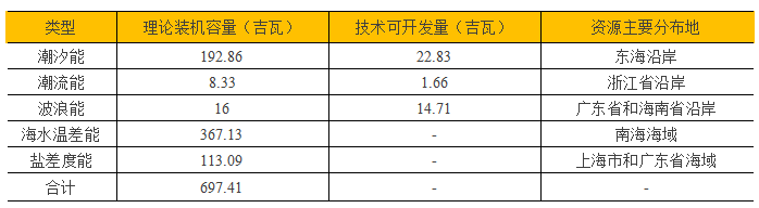 2:我國近海海洋能資源統計