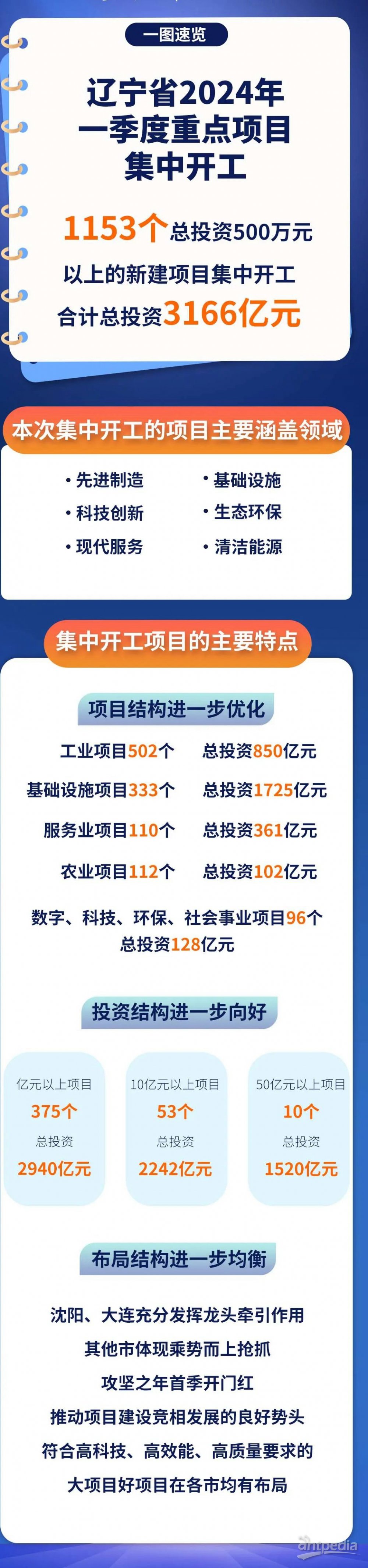 318日上午,遼寧省舉行2024年一季度重點項目集中開工活動。此次共1153個總投資500萬元以上的新建項目集中開工,合計總投資3166億元,涵蓋了先進制造、科技創新、現代服務、基礎設施、生態環保、清潔能源等多個領域。