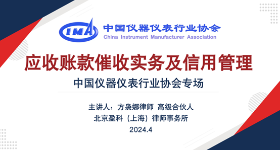 為進(jìn)一步助力行業(yè)企業(yè)做好應(yīng)收賬款管理,降低經(jīng)營(yíng)風(fēng)險(xiǎn),提升經(jīng)營(yíng)效率和能力,4月26日上午,由中國(guó)儀器儀表行業(yè)協(xié)會(huì)、北京盈科(上海)律師事務(wù)所聯(lián)合舉辦的“2024年度儀器儀表行業(yè)首期培訓(xùn)班--應(yīng)收賬款催收實(shí)務(wù)和信用管理”圓滿舉辦。本次培訓(xùn)班為線上形式,吸引了儀器儀表行業(yè)企業(yè)的近260名學(xué)員參加,中國(guó)儀器儀表行業(yè)協(xié)會(huì)副秘書長(zhǎng)鄭朝松出席此次培訓(xùn)活動(dòng)并致辭。