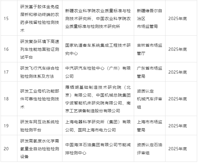1. 檢驗(yàn)檢測(cè)促進(jìn)產(chǎn)業(yè)優(yōu)化升級(jí)行動(dòng)重點(diǎn)項(xiàng)目