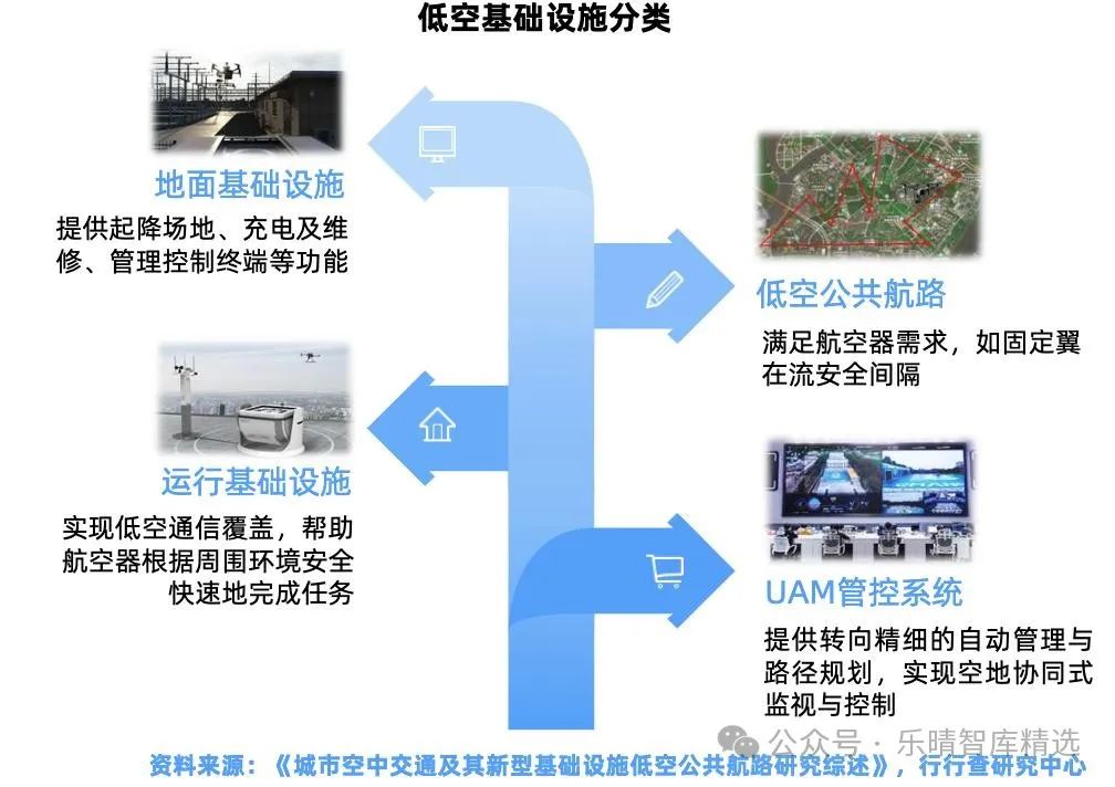 低空基礎(chǔ)設(shè)施主要由運行和地面兩大類設(shè)施構(gòu)成,同時輔以公共航路和管控系統(tǒng)。