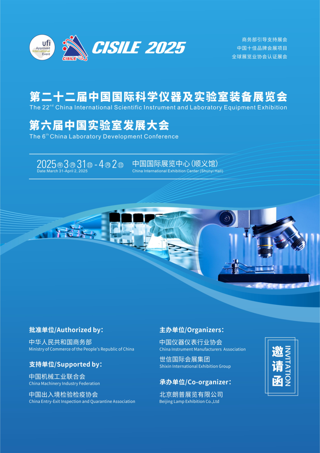 為深入貫徹落實習近平總書記關于加快實現高水平科技自立自強的指示精神,助推科技創新和產業創新深度融合,助力發展新質生產力,在商務部、中國機械工業聯合會的指導下,中國儀器儀表行業協會與世信國際會展集團研究決定,于2025331-42日在中國國際展覽中心(順義館)舉辦第二十二屆中國國際科學儀器及實驗室裝備展覽會(以下簡稱 CISILE 2025),預計展示面積40000平方米,參展企業1000余家,專業觀眾超50000人次。集中展示實驗室儀器及裝備、分析儀器、光學儀器、試驗儀器、生命科學儀器、生物技術與儀器等專業領域的新產品、新技術、新成果。同期將舉辦第六屆實驗室發展大會、第五屆中國危化品管理與實驗室安全高峰論壇等學術論壇及相關活動,為廣大科研人員及行業人士便捷地獲取行業最新資訊、分享前沿技術和研究成果,搭建交流研討產業政策的互動平臺。