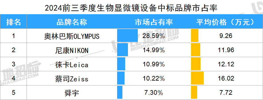 據(jù)比地招標(biāo)網(wǎng)統(tǒng)計(jì):2024年前三季度,生物顯微鏡招投標(biāo)市場有871家采購單位,872家中標(biāo)單位,中標(biāo)設(shè)備數(shù)量達(dá)2834臺(tái),中標(biāo)總金額約3.90億元。(產(chǎn)品關(guān)鍵詞:生物顯微鏡、倒置生物顯微鏡、熒光生物顯微鏡等)