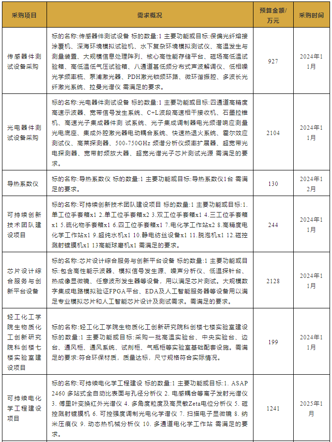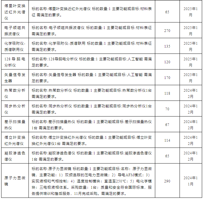 近日,廣東工業(yè)大學(xué)發(fā)布18項儀器設(shè)備采購意向,預(yù)算總額達(dá)8457萬元,涉及電感耦合等離子發(fā)射光譜儀、八通道甚低頻分布式聲波解調(diào)儀、低相噪光學(xué)頻率梳、電子順磁共振波譜儀、多角度粒度及高靈敏Zeta電位分析儀、拉曼光譜儀等,預(yù)計采購時間為2024年11月~2025年1月。