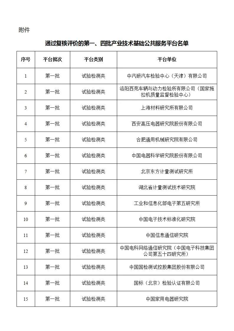 附件:通過復(fù)核評價的第一、四批產(chǎn)業(yè)技術(shù)基礎(chǔ)公共服務(wù)平臺名單