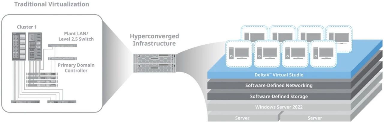 ▲圖1:超融合基礎(chǔ)架構(gòu)(HCI)是軟件定義平臺的構(gòu)建塊,結(jié)合了傳統(tǒng)和實(shí)時工作負(fù)載。艾默生的無界自動化愿景就是一種軟件定義的控制技術(shù),該模型旨在通過消除專用控制硬件,使項目更容易執(zhí)行,更具成本效益,從而實(shí)現(xiàn)更靈活、可擴(kuò)展、面向未來的運(yùn)營。