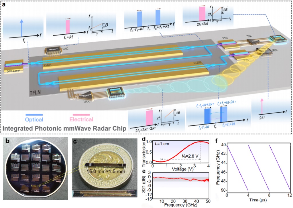 近日,中國科學(xué)院院士、南開大學(xué)智能光子研究院院長祝寧華團(tuán)隊(duì)與香港城市大學(xué)合作,成功研制出薄膜鈮酸鋰光子毫米波雷達(dá)芯片,在毫米波雷達(dá)領(lǐng)域取得重大突破。這一創(chuàng)新成果,為未來6G通信、智能駕駛、精準(zhǔn)感知等前沿領(lǐng)域的應(yīng)用奠定了堅(jiān)實(shí)基礎(chǔ)。