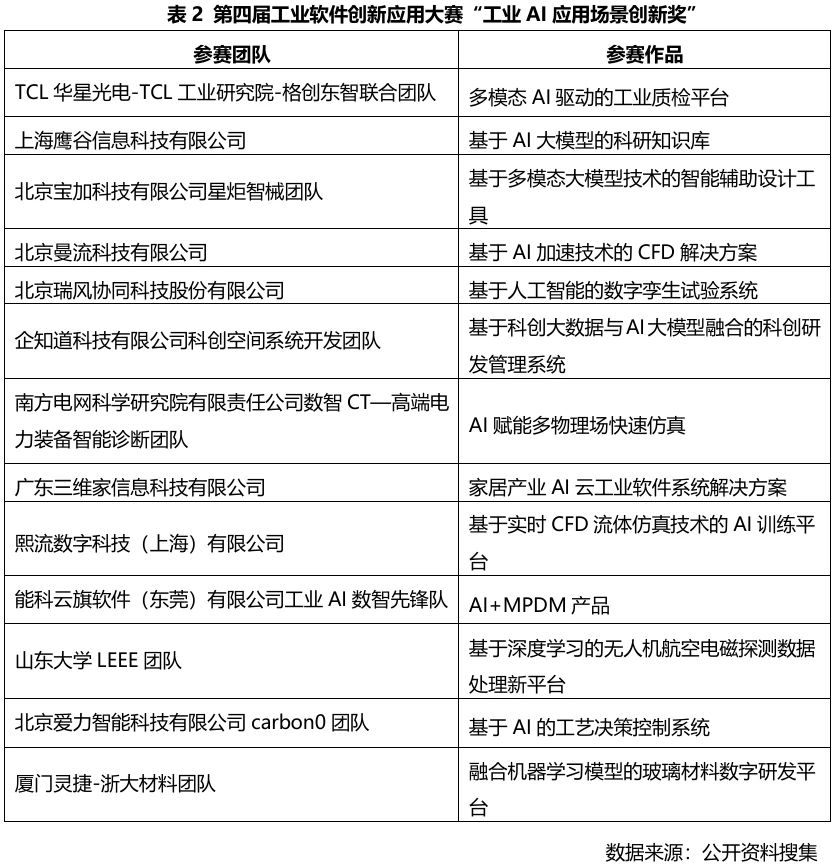 第四屆工業(yè)軟件創(chuàng)新應(yīng)用大賽以“AI+工業(yè)軟件”為主題,涌現(xiàn)出一大批優(yōu)秀的AI創(chuàng)新與應(yīng)用項目,有98家隊伍參與比賽,有41支隊伍入圍決賽,13支隊伍獲得技術(shù)創(chuàng)新獎,13支隊伍獲得應(yīng)用場景創(chuàng)新獎。