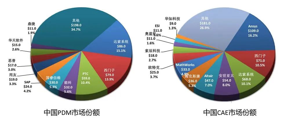 ►產(chǎn)業(yè)集中度較低,難以形成規(guī)模效應(yīng)。根據(jù)CIMData報告,中國PDM市場國內(nèi)CR5企業(yè)僅占據(jù)約20%份額,其他眾多國內(nèi)中小企業(yè)分享剩余40%份額;中國CAE市場國內(nèi)CR5占據(jù)不到15%份額,其他眾多國內(nèi)中小企業(yè)分享剩余的35%份額。