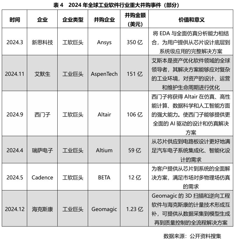 一方面,工業(yè)軟件巨頭之間進(jìn)行并購整合,補全能力版圖;另一方面,工業(yè)巨頭也不斷并購工業(yè)軟件企業(yè),強化自身軟件實力。