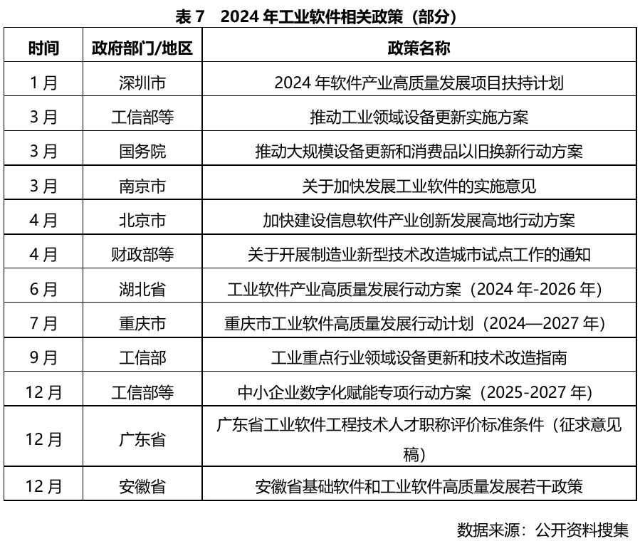 2024年,工信部等多部委、各地方政府進(jìn)一步出臺工業(yè)軟件相關(guān)政策,其中《工業(yè)重點行業(yè)領(lǐng)域設(shè)備更新和技術(shù)改造指南》提出了2027 年完成約 200 萬套工業(yè)軟件和 80 萬臺套工業(yè)操作系統(tǒng)更新?lián)Q代任務(wù)。