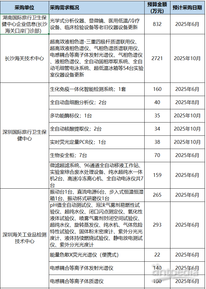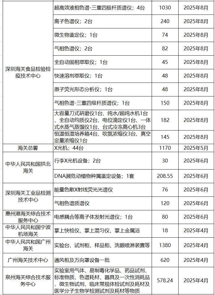 1.3億!海關多個系統儀器設備及試劑耗材采購意向發