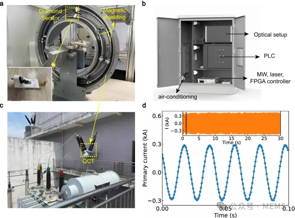 此外,該成果最終應(yīng)用于安徽合肥110kV變電站的電流實時監(jiān)測,成功實現(xiàn)對三相交流電路中單相電流的實時監(jiān)測。該研究不僅攻克了金剛石量子傳感器的集成化關(guān)鍵技術(shù),而且推動了量子傳感技術(shù)在工業(yè)領(lǐng)域的應(yīng)用落地。