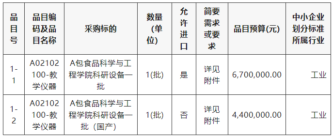 采購(gòu)包1(A包食品科學(xué)與工程學(xué)院科研設(shè)備一批):