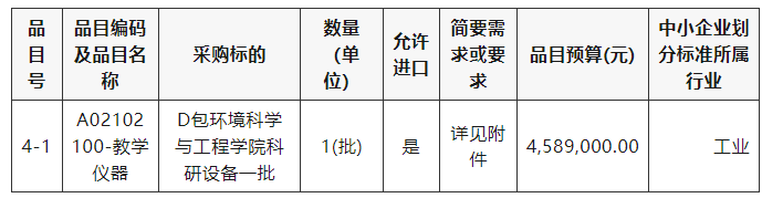 采購(gòu)包4(D包環(huán)境科學(xué)與工程學(xué)院科研設(shè)備一批):