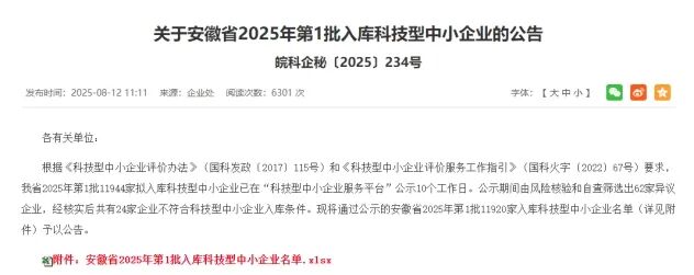 喜訊傳來!安徽省2025年第1批入庫科技型中小企業(yè)名單正式公示,合肥精大儀表股份有限公司赫然在列,這是對我司科技創(chuàng)新實(shí)力與持續(xù)發(fā)展?jié)摿Φ母叨日J(rèn)可。尤為值得一提的是,自2018年起,合肥精大已連續(xù)多年榮膺此殊榮,彰顯了其在行業(yè)內(nèi)的領(lǐng)先地位和強(qiáng)勁的發(fā)展勢頭。
