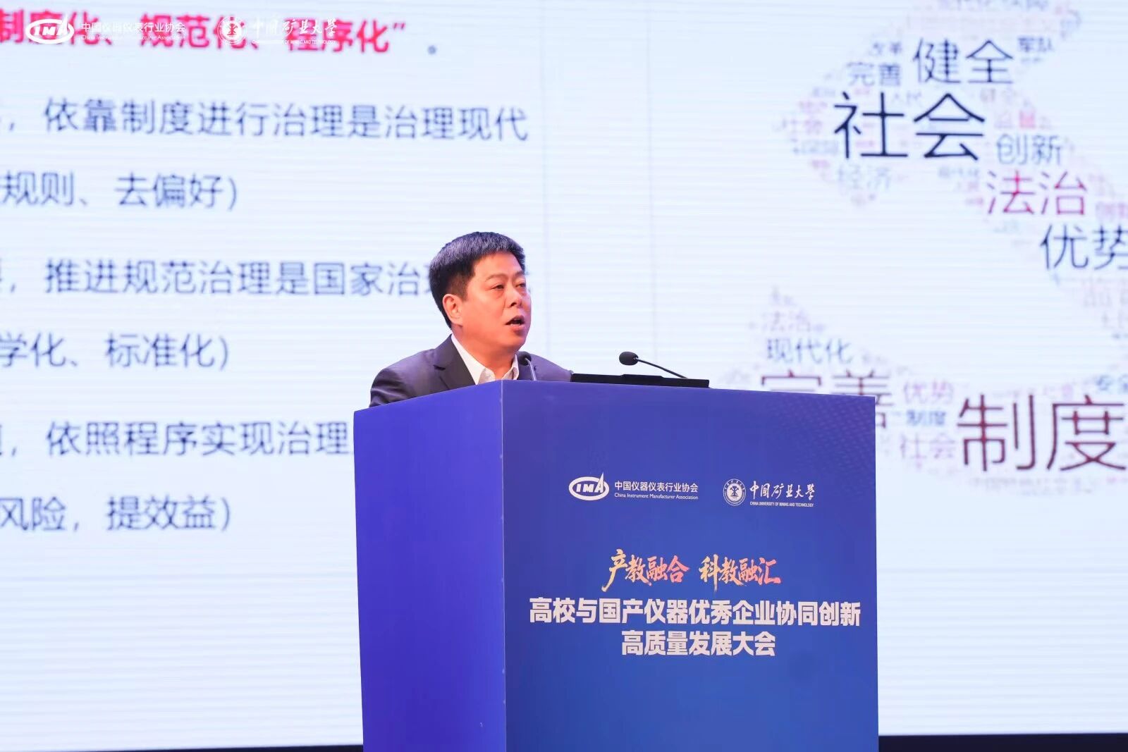 11月13日至14日,“‘產(chǎn)教融合·科教融匯’—高校與國產(chǎn)儀器優(yōu)秀企業(yè)協(xié)同創(chuàng)新高質(zhì)量發(fā)展大會”在中國礦業(yè)大學(南湖校區(qū))召開。此次大會匯聚了來自全國高校、科研機構(gòu)、行業(yè)企業(yè)的500余名代表,共同為“產(chǎn)教融合、科教融匯”發(fā)展與創(chuàng)新出謀劃策,擘畫未來藍圖。會議由中國儀器儀表行業(yè)協(xié)會(以下簡稱“協(xié)會”)主辦,中國礦業(yè)大學(以下簡稱“礦大”)、中國儀器儀表行業(yè)協(xié)會實驗室建設與安全分會承辦。