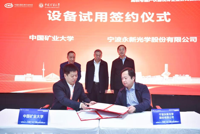 此次活動促成了寧波永新光學股份有限公司,先臨三維科技股份有限公司、成都玖錦科技有限公司、中國科學院合肥物資科學研究院4家企業(yè)與礦大簽訂設備試用協(xié)議。工信部裝備工業(yè)一司原一級巡視員苗長興、協(xié)會秘書長李躍光、礦大副書記李江濤共同見簽,礦大實驗室與設備管理處處長吳祝武代表礦大與企業(yè)簽約,通過此次設備試用協(xié)議的簽訂及合作平臺的搭建,開啟了校企儀器應用與技術(shù)合作的嶄新篇章,為國產(chǎn)儀器的市場化應用注入了新的動力。