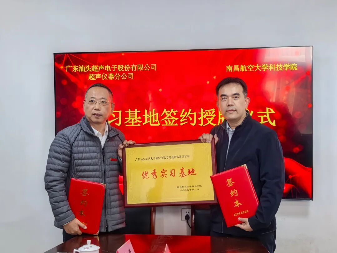 12月19日,南昌航空大學科技學院“汕頭超聲獎學金”捐贈暨校企共建實習基地授牌儀式在南昌航空大學上海路校區隆重舉行。出席儀式的有南昌航空大學科技學院黨委書記鄧洪峰、南昌航空大學無損檢測專業創始人之一任吉林教授、汕頭超聲副總經理許培杰及雙方代表,共同見證這一深化校企合作的重要時刻。