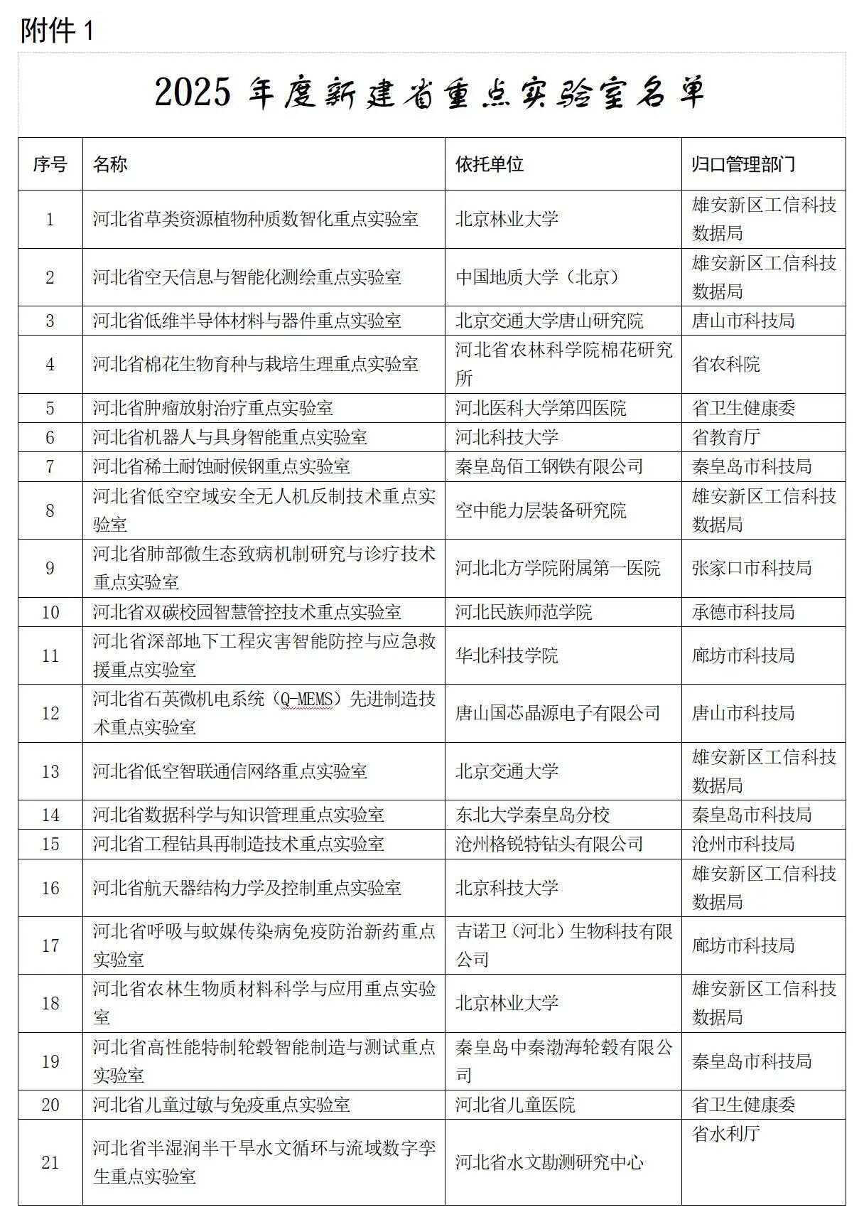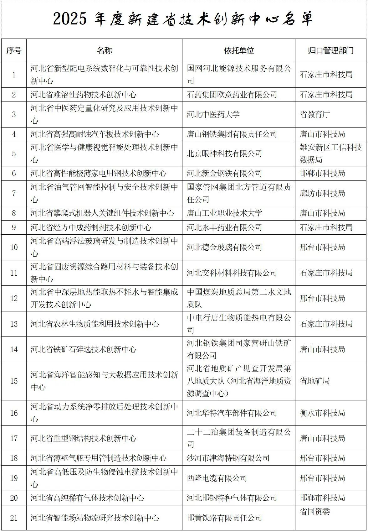 河北省科學(xué)技術(shù)廳關(guān)于公布2025年新建省重點(diǎn)實(shí)驗(yàn)室和省技術(shù)創(chuàng)新中心名單的通知
