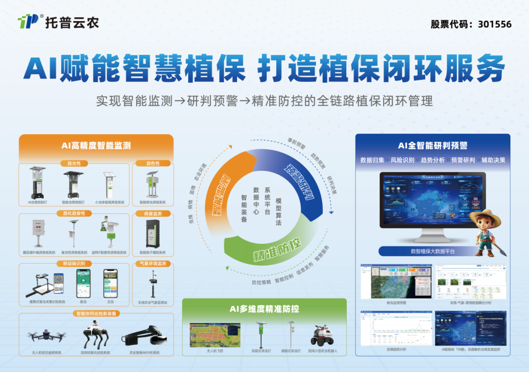 此次項目的技術落地,是托普云農(nóng)在智慧農(nóng)業(yè)領域長期深耕的集中體現(xiàn)。通過持續(xù)深化人工智能、大數(shù)據(jù)等數(shù)智技術在植保領域的融合應用,托普云農(nóng)成功打通智能監(jiān)測→研判預警→精準防控的數(shù)智植保全鏈路完整閉環(huán),構建起現(xiàn)代化植保防控體系,推動植保行業(yè)向智能化、自動化、綠色化方向邁進。