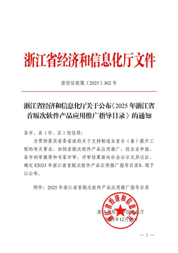 浙江省首版次軟件產品(工商業燃氣流量計大數據中心軟件 V1.0)