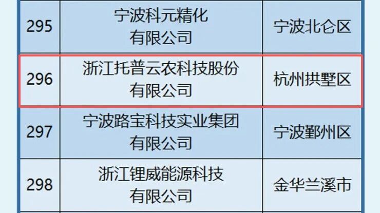 近日,2025年浙江省高新技術企業創新能力500強榜單正式揭曉,浙江托普云農科技股份有限公司(股票簡稱:托普云農,股票代碼:301556)憑借深厚的科技創新積淀、突出的技術突破實力與卓越的成果轉化能力,成功入選榜單。