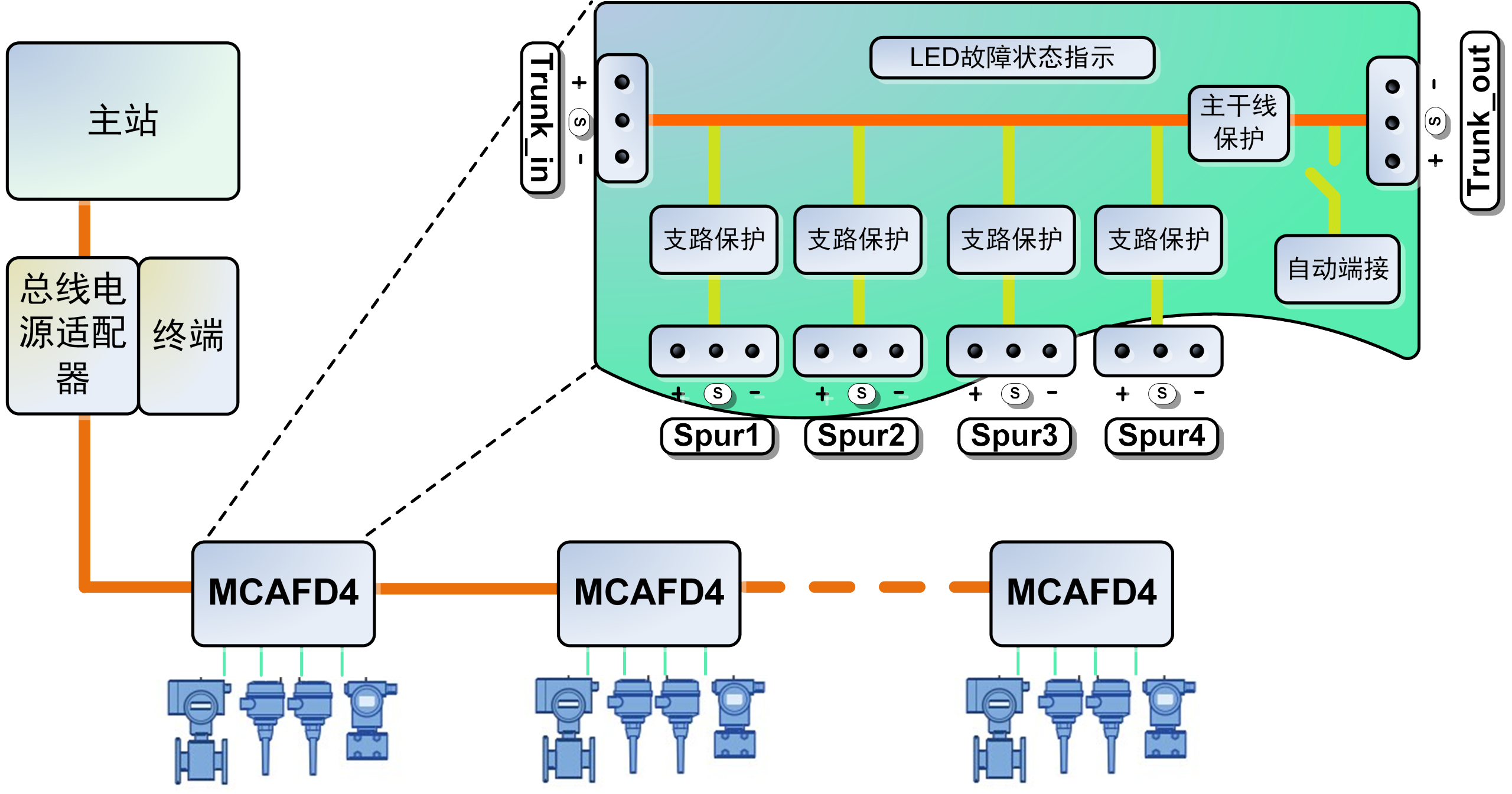 通過MCAFD系列分配器,用戶可構(gòu)建標(biāo)準(zhǔn)主干線分支結(jié)構(gòu)現(xiàn)場(chǎng)總線網(wǎng)絡(luò),在節(jié)省電纜和橋架成本的同時(shí),實(shí)現(xiàn)故障快速隔離與診斷,顯著提升系統(tǒng)可用性。